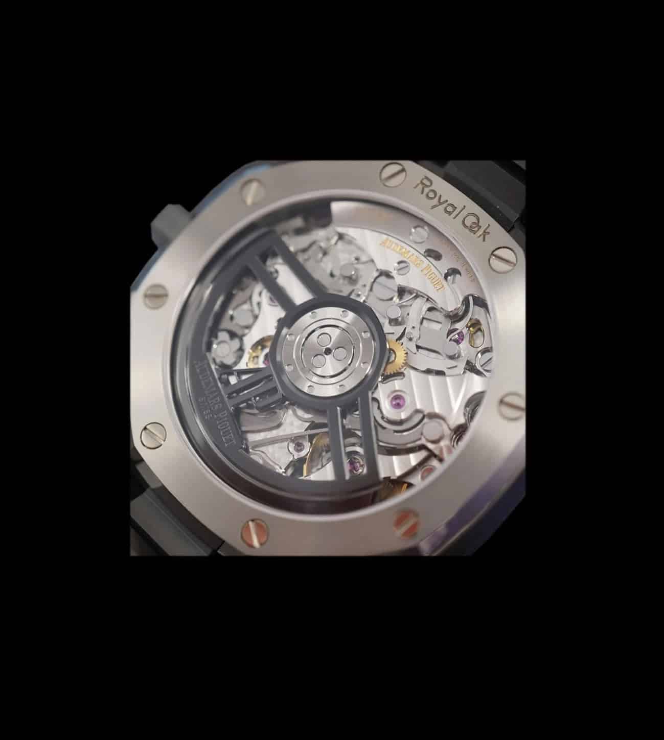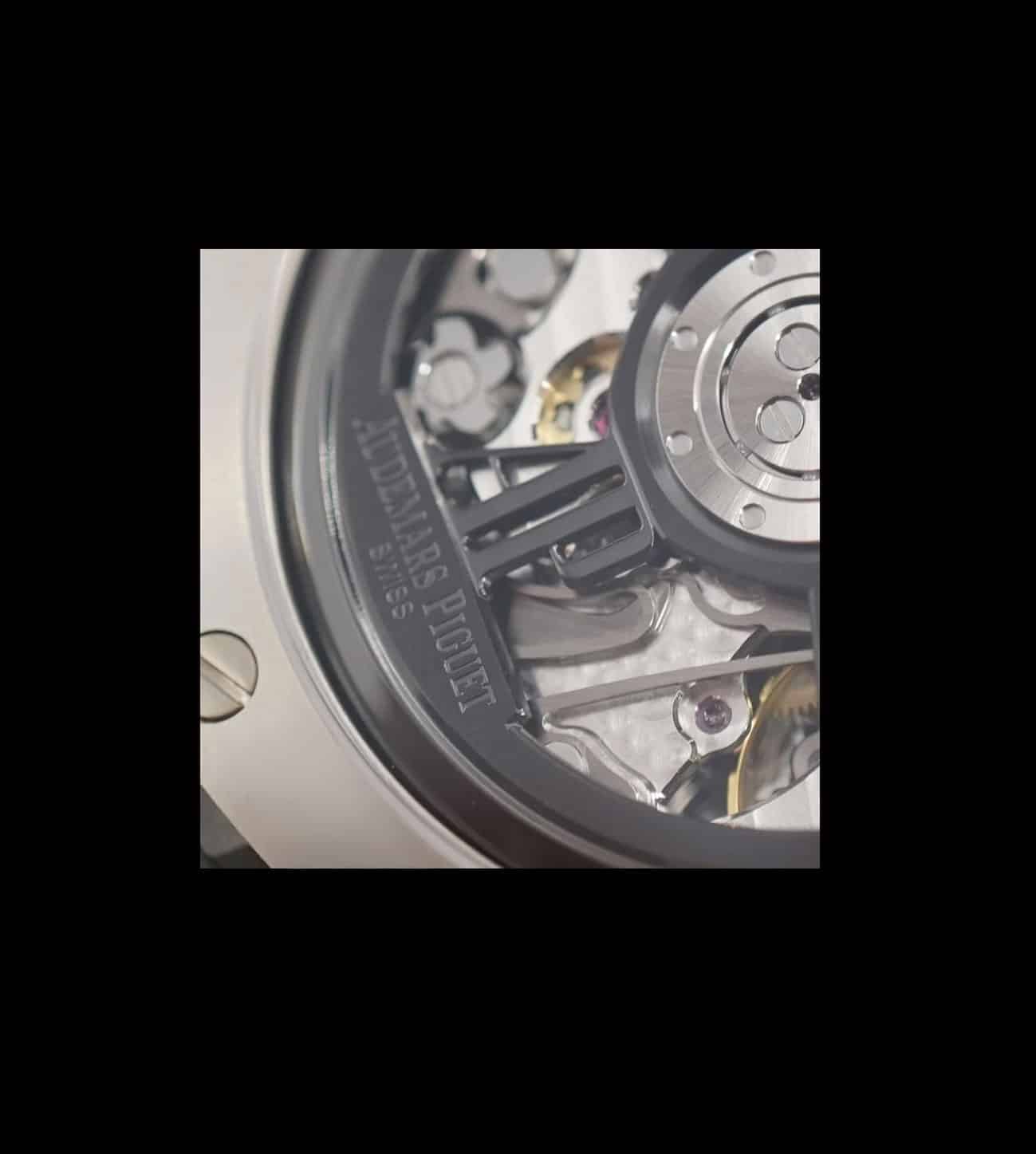 Movimiento: Calibre automático de manufactura Audemars Piguet 4401 con cronógrafo flyback integrado, 70 h de reserva de marcha.