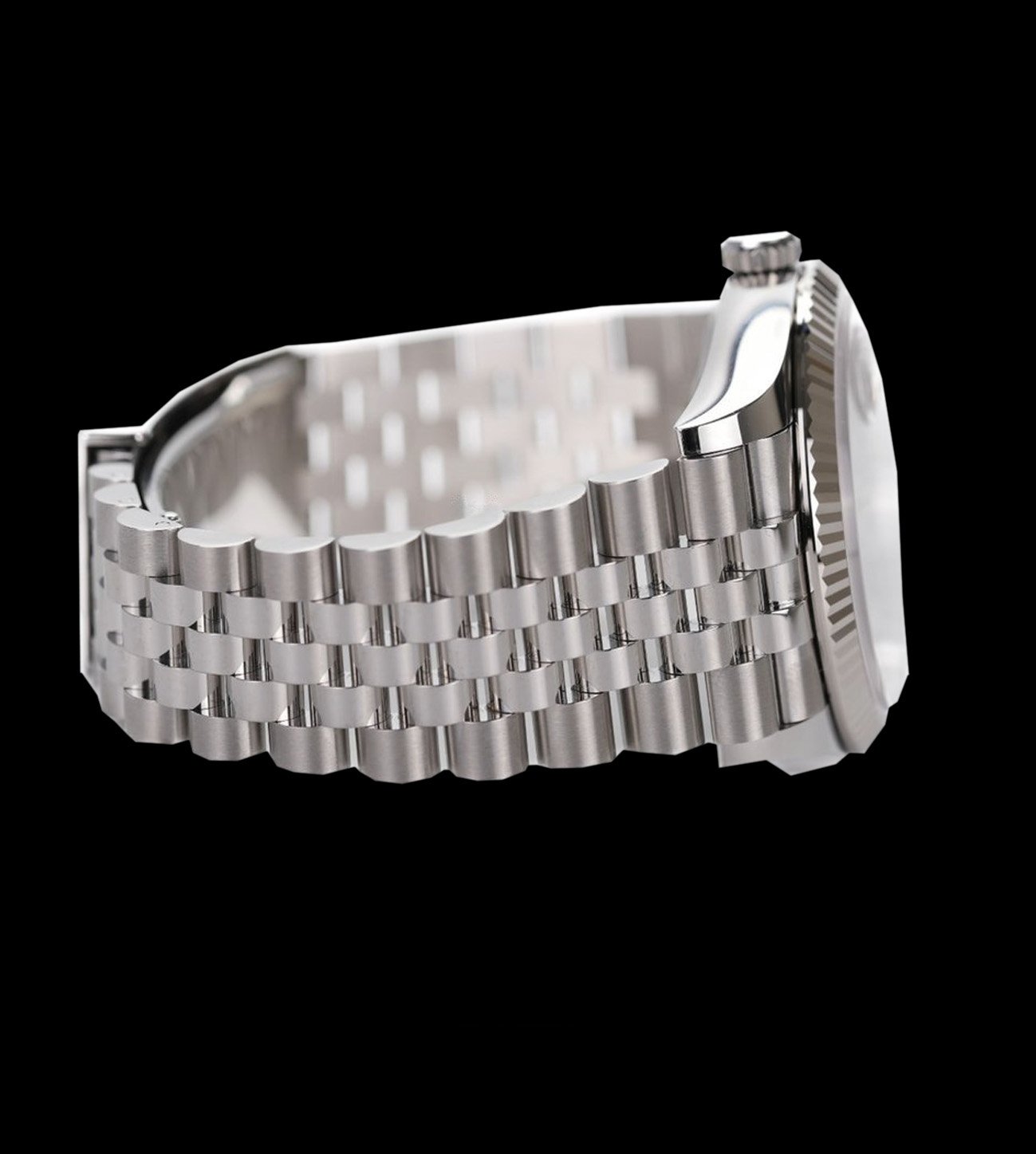 El cristal de zafiro auténtico mantiene su transparencia a lo largo del tiempo y evita marcas de uso habituales en materiales inferiores. La lente Cyclops, con aumento x2,5, facilita la lectura de la fecha y replica uno de los detalles más reconocibles del Datejust. Esta combinación de estética y utilidad convierte a este reloj en un datejust rolex replica fiel tanto en diseño como en experiencia de uso.