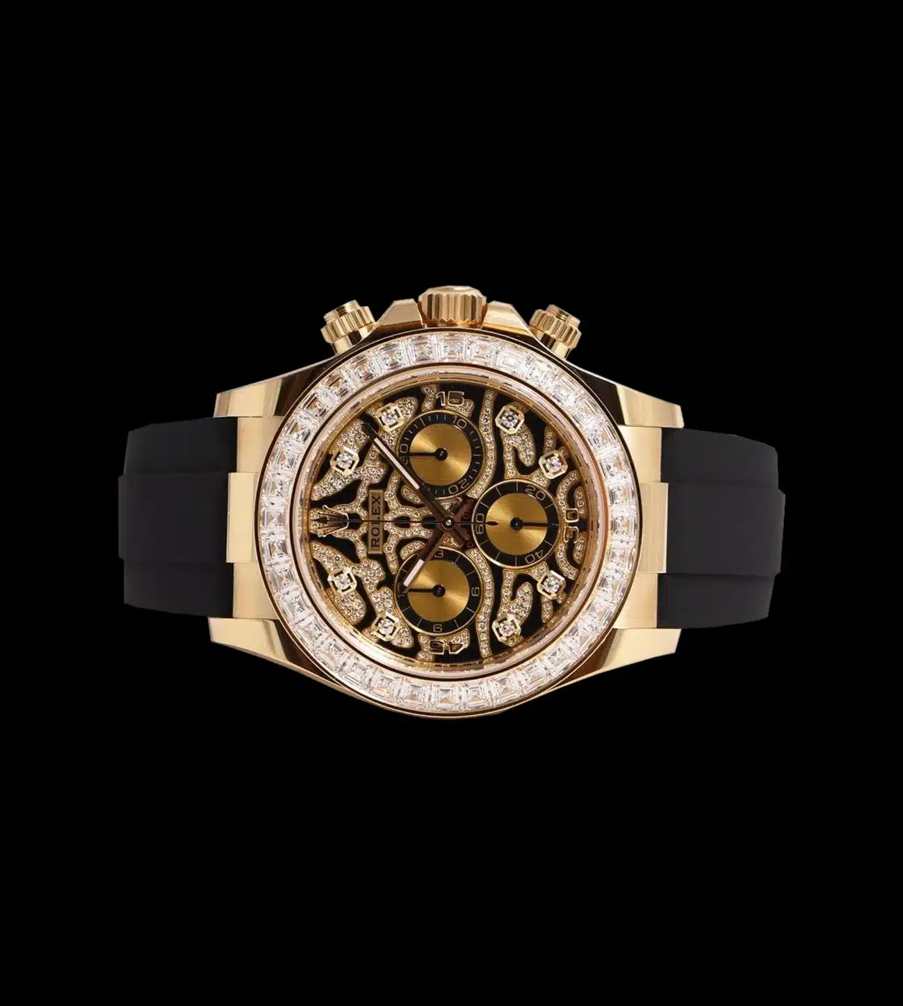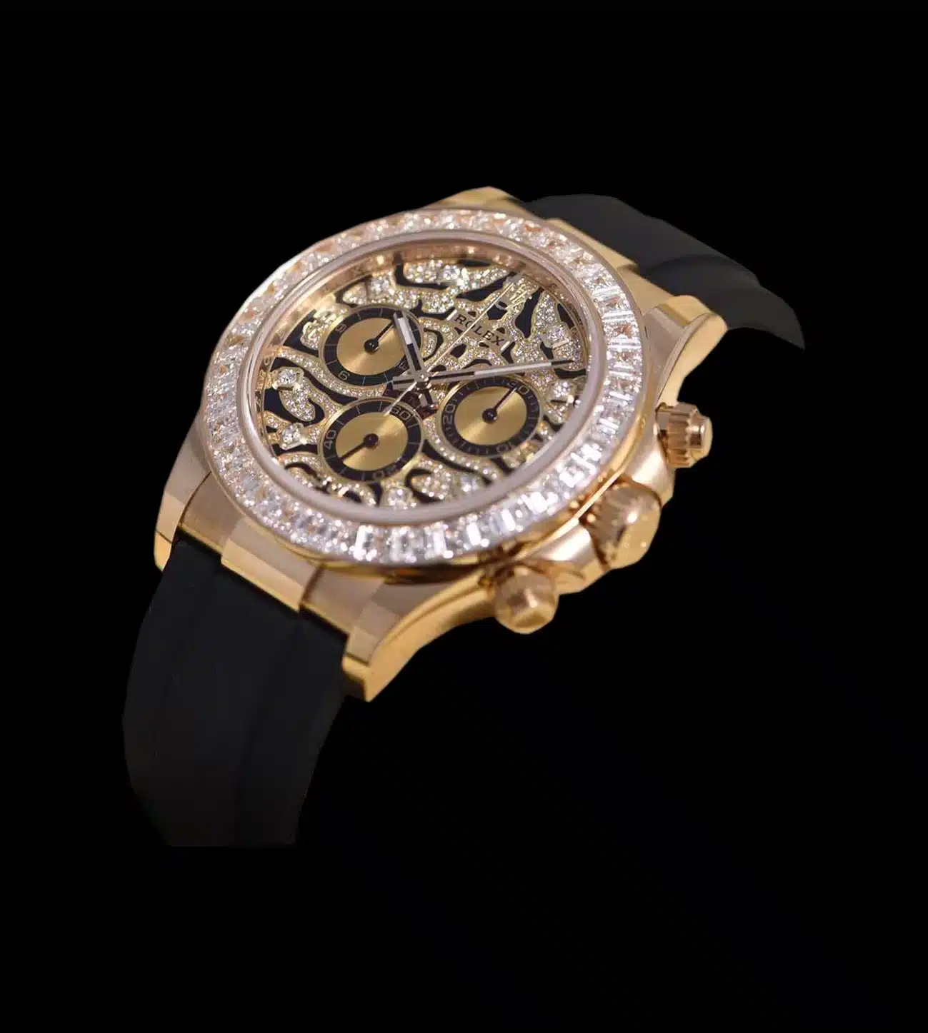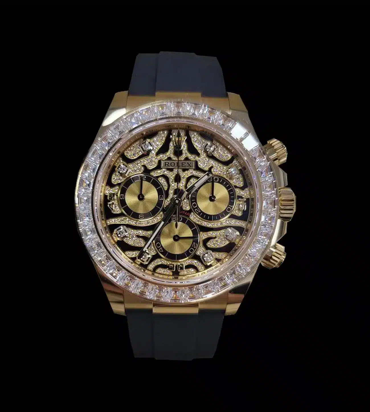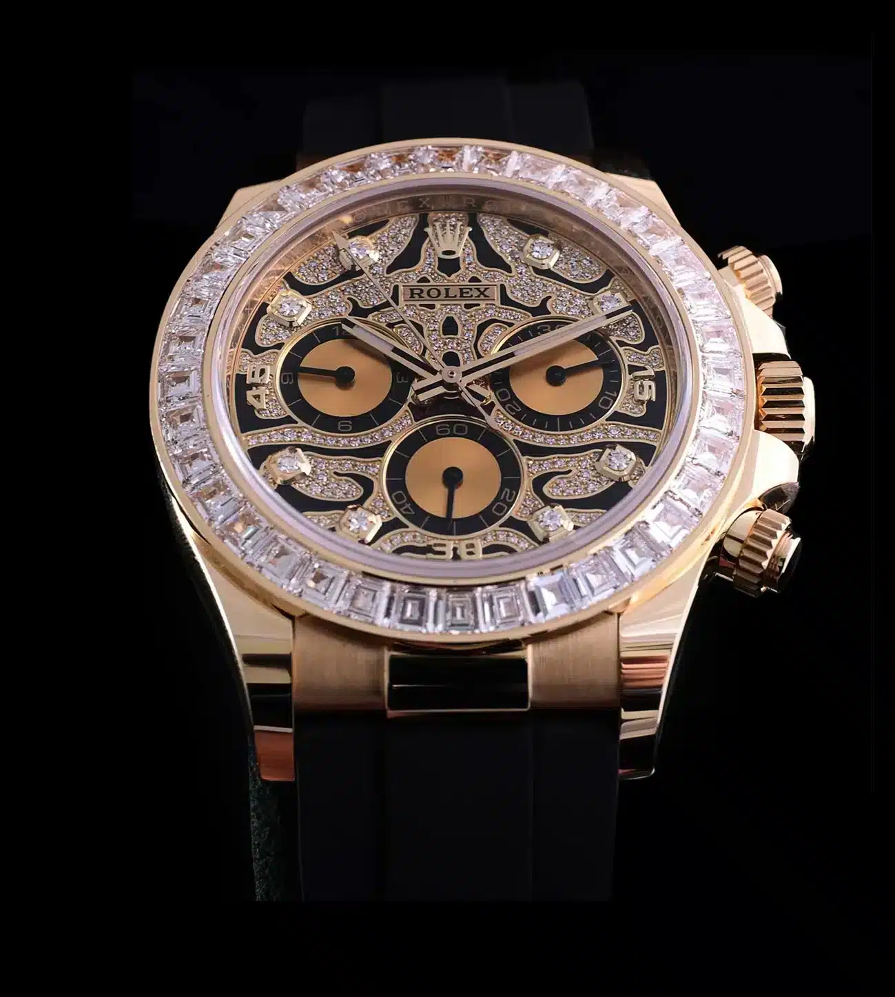 Este Rolex replica Eye Of The Tiger de IRW reproduce con precisión la edición más ornamental y llamativa de la línea Daytona. Esta equipado con movimiento 4130 funcional ensamblado en Florencia, validado bajo norma ISO 9001, es una pieza de alto impacto estético y fiabilidad técnica real.