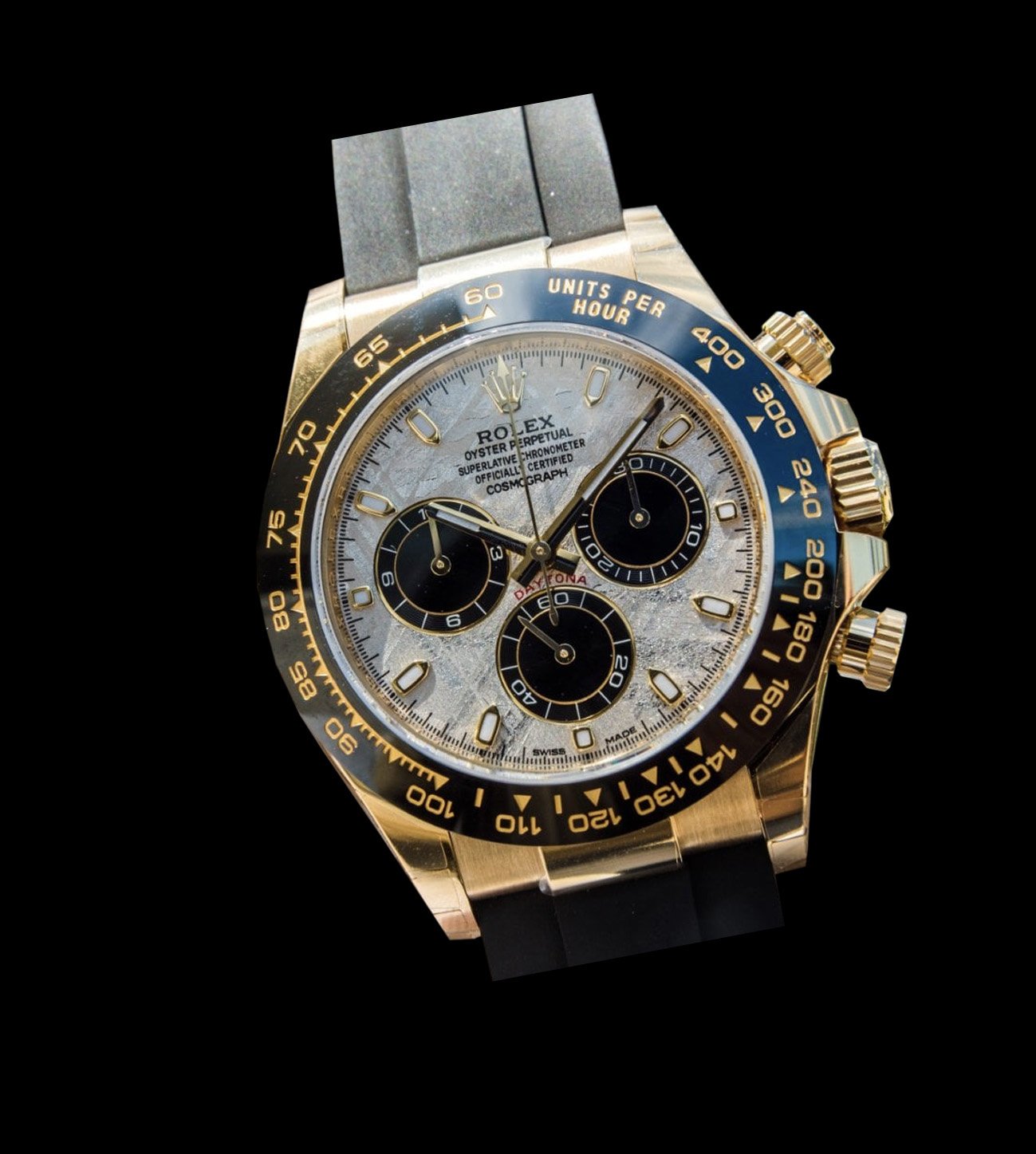 El Daytona Cosmograph Oysterflex Meteorite Gold 18K combina lujo artesanal con funcionalidad de alta precisión, ideal para quienes buscan lo mejor en relojería.