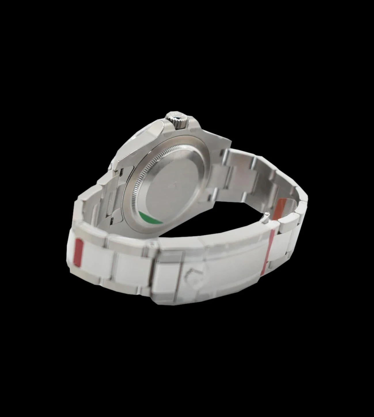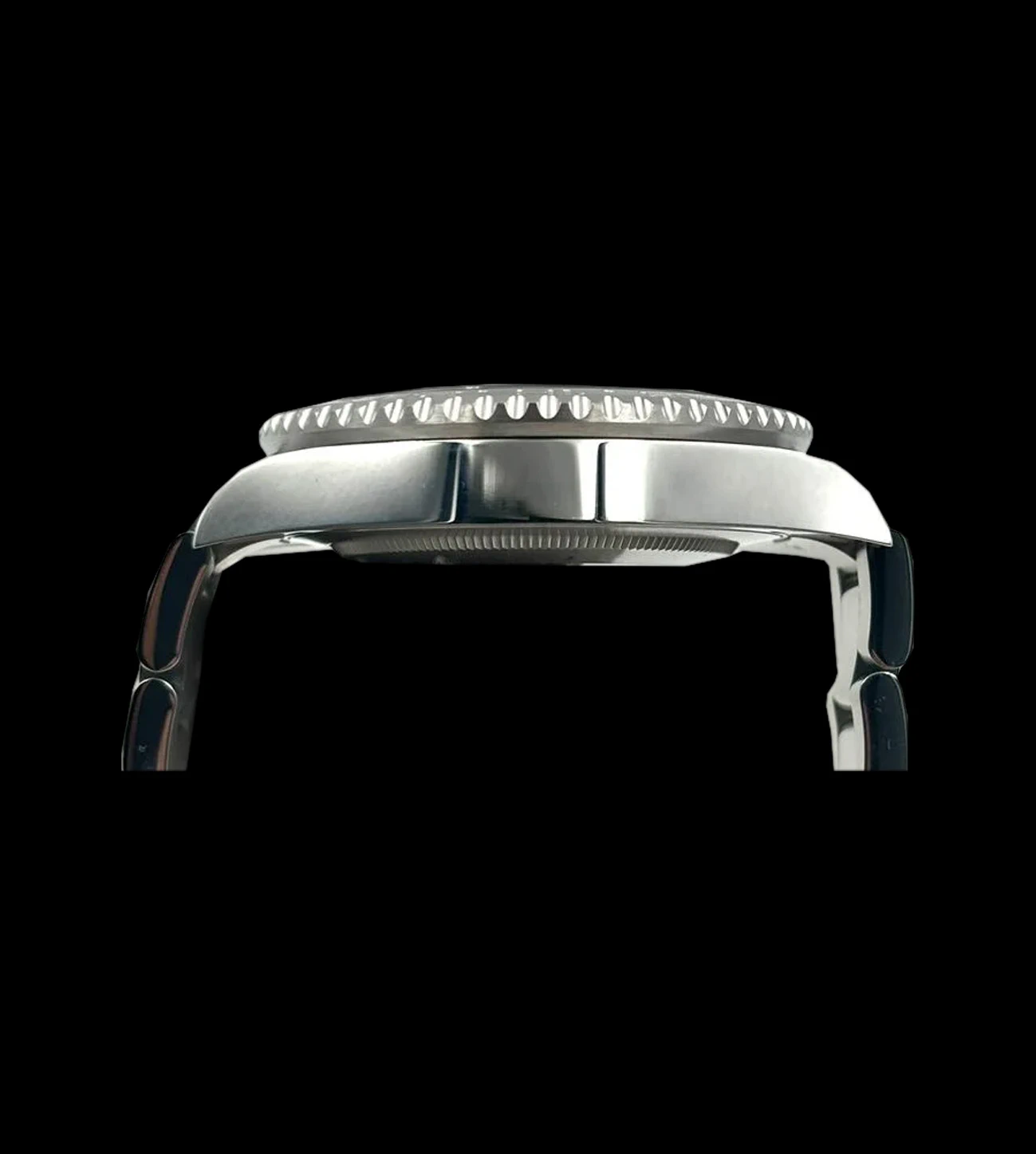 - Construcción premium en acero 904L: La caja y el brazalete, están fabricados en acero 904L con aleación de rutenio. Ofrecen una alta resistencia a impactos y a la corrosión. Este material, difícil de mecanizar, conserva su brillo y tacto sólido incluso tras años de uso intensivo, manteniendo la fidelidad estética al modelo original.