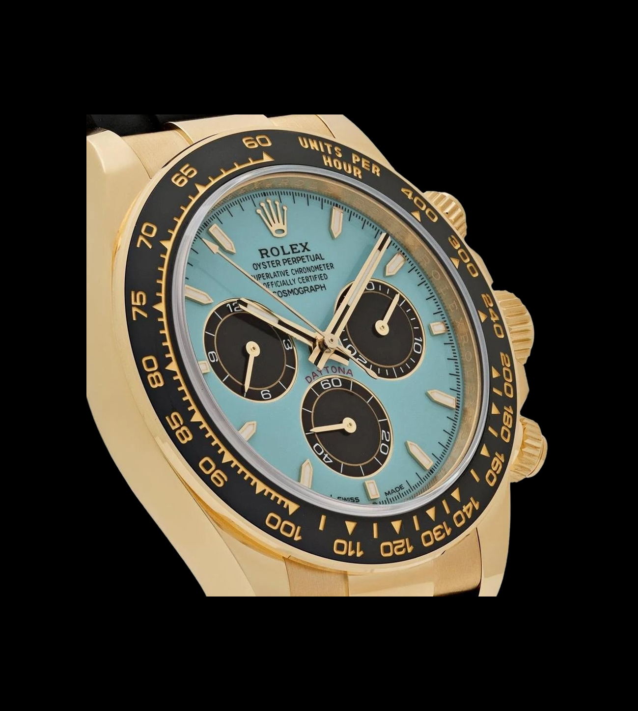 Descubre el exclusivo reloj réplica 1:1 Rolex Daytona Tiffany Blue, un homenaje al icónico modelo de edición limitada con esfera azul Tiffany y caja de oro amarillo 18K. Perfecto para quienes buscan la elegancia deportiva y exclusividad en este super clon de IRW.