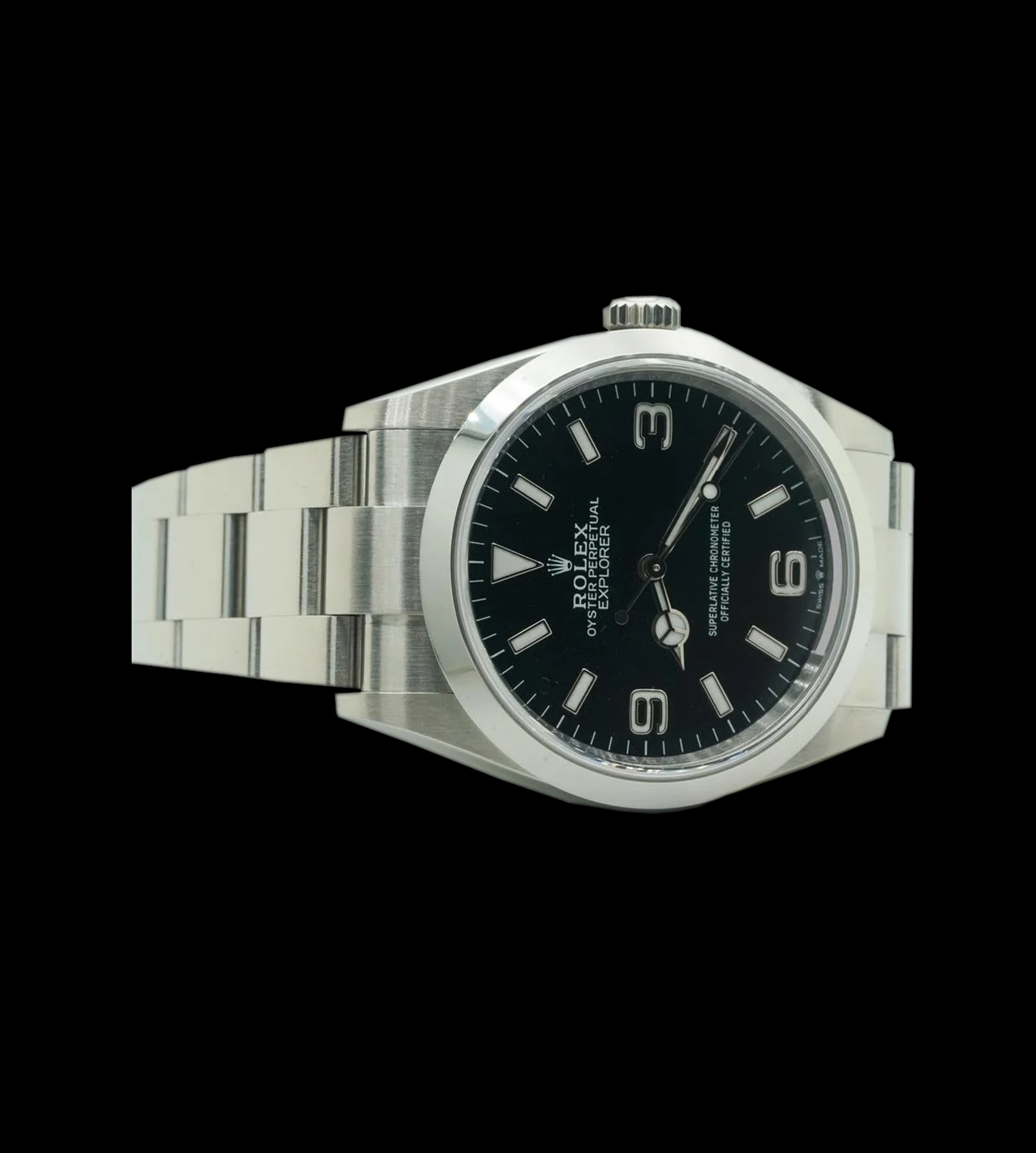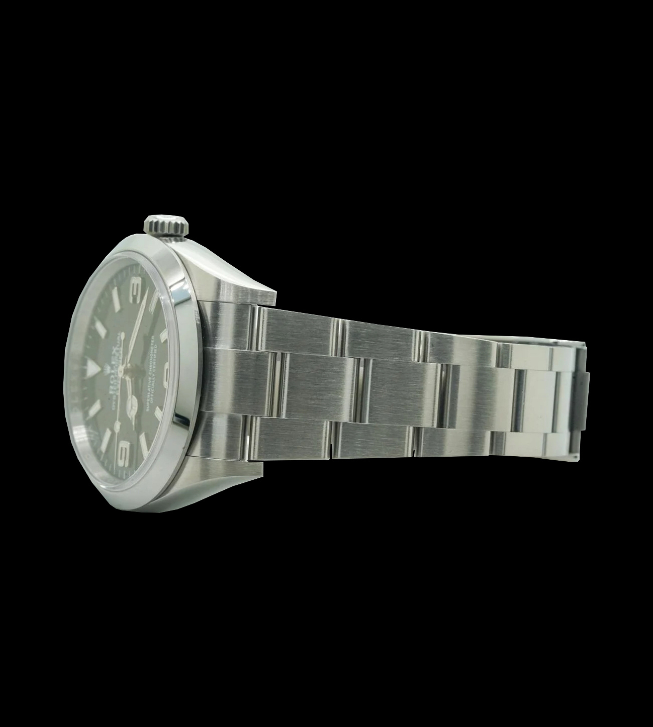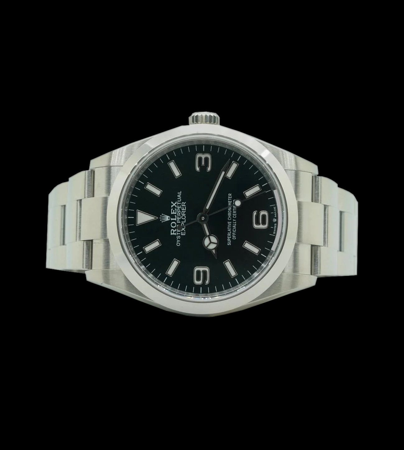 La esfera negra renovada, con combinación de arábigos y líneas mantiene la identidad de los Explorer originales. Refuerza la legibilidad y el carácter técnico del modelo.