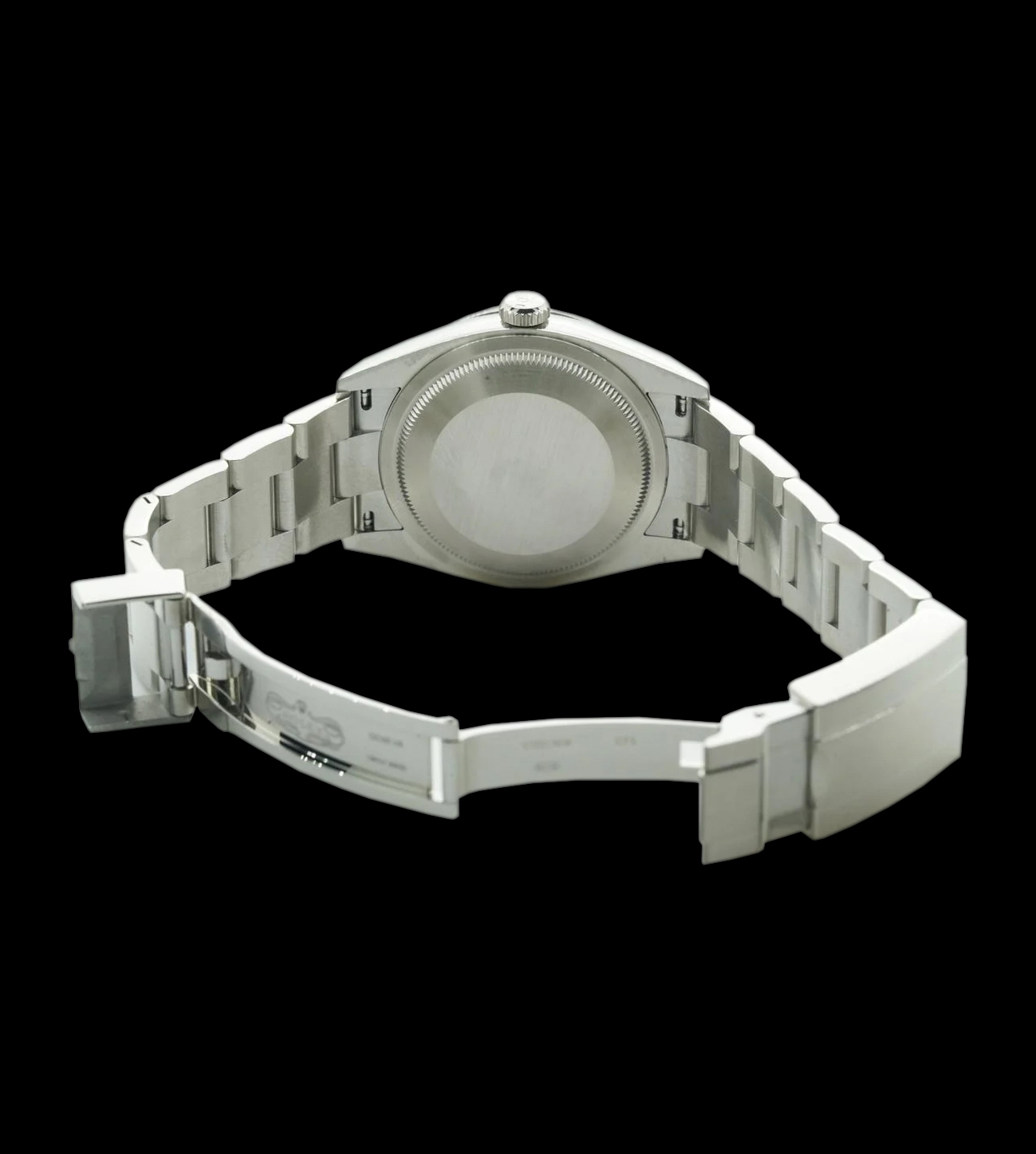 - Caja de acero Oyster adaptada a 40 mm: El nuevo diámetro reduce los 42 mm del modelo anterior y lo adapta a muñecas medianas sin perder presencia. El acero 904L asegura una resistencia superior a la corrosión y un brillo estable.