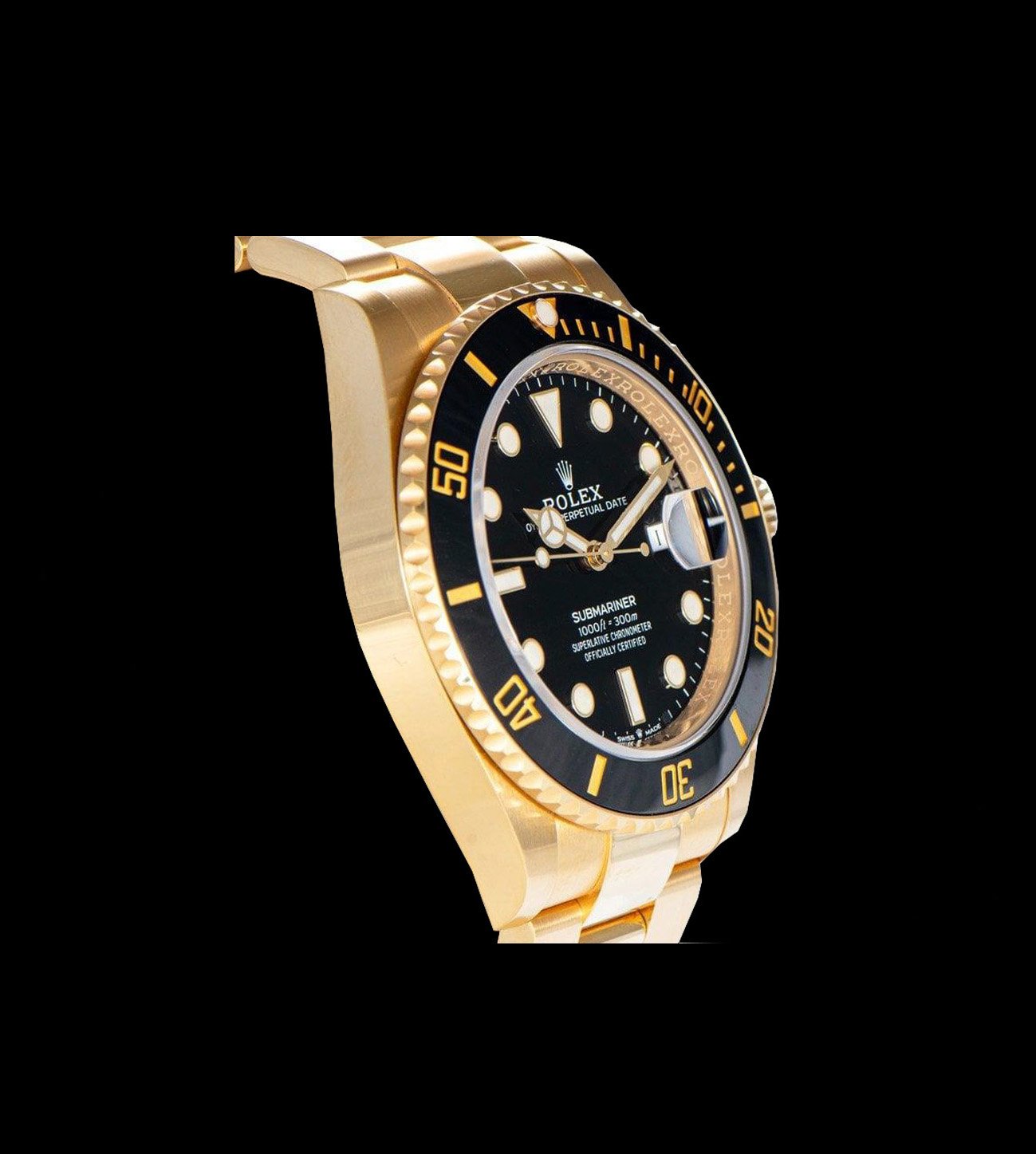 El bisel Cerachrom combina la cerámica negra de alta resistencia con marcadores dorados incrustados. El proceso de pigmentación controlada garantiza estabilidad cromática frente a la decoloración típica en relojes clon de bajo nivel. El giro unidireccional reproduce la suavidad y exactitud del modelo original, fundamental para cálculos de inmersión. No se trata solo de apariencia, el Submariner Gold Black superclon está pensado para un uso real.